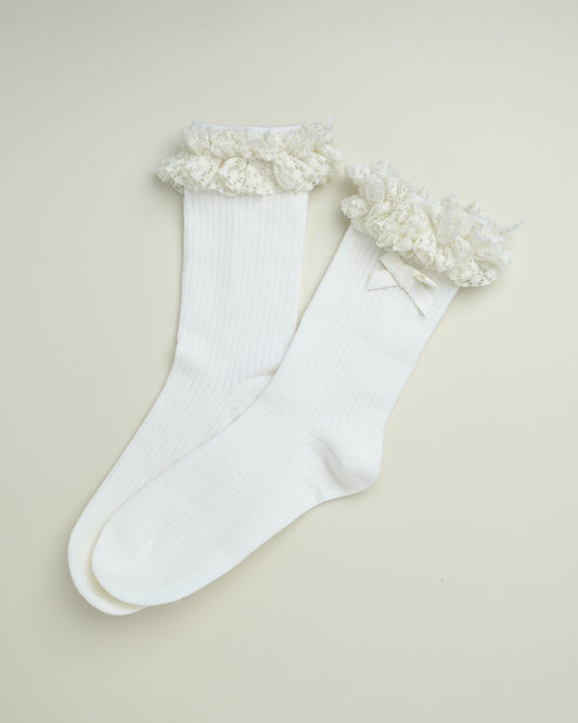 Lace Ruffle Pearl Bow Socks – Women’s Cotton Crew Socks