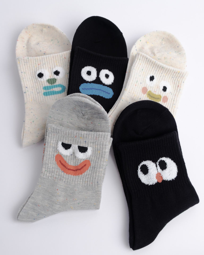 Designed with expressive funny face details, these cotton quarter socks add personality to even the simplest outfits. Easy to wear, easy to style, and comfortable enough for daily use.